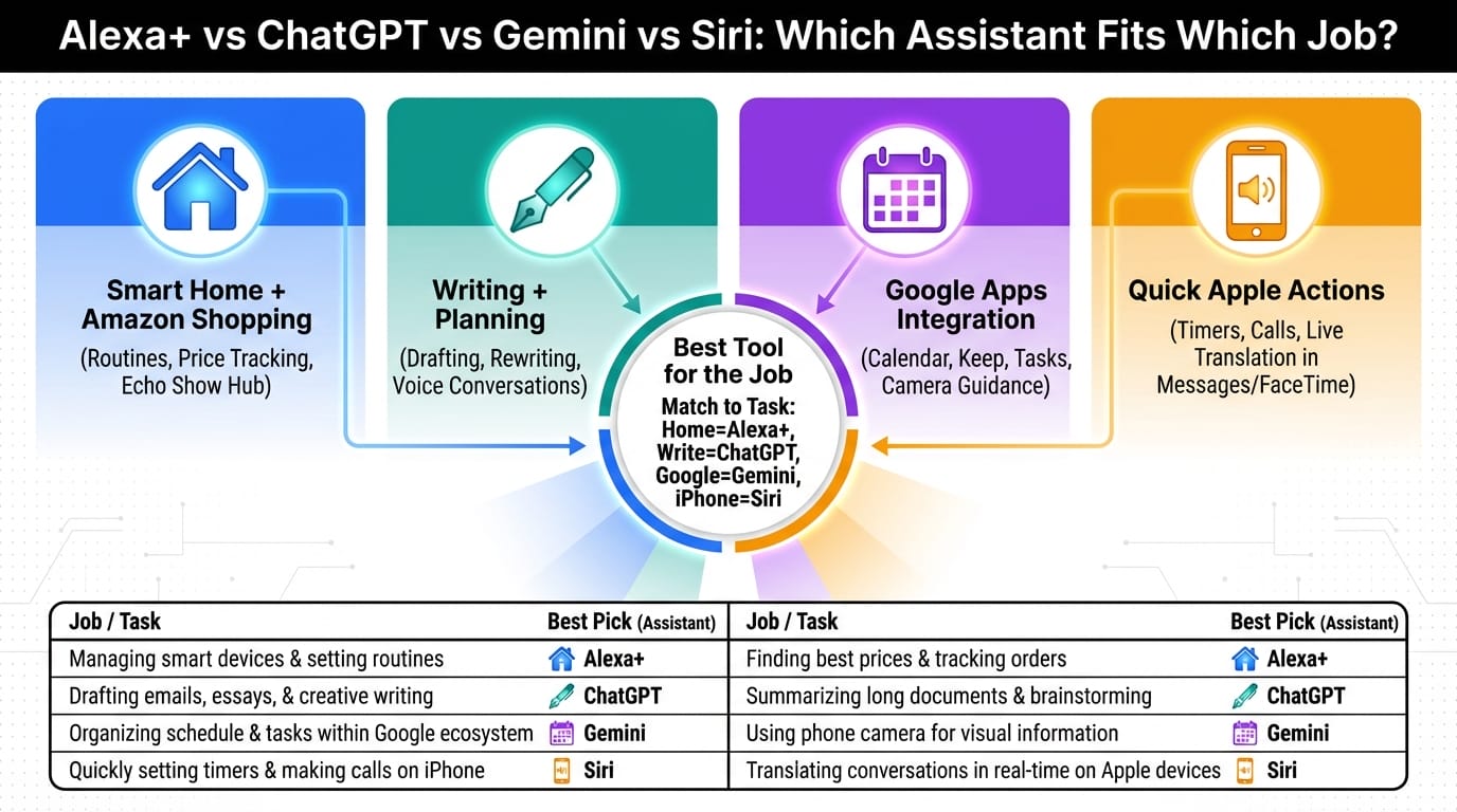 Alexa+ vs vs Gemini vs Siri: Which Assistant Fits Which Job?
