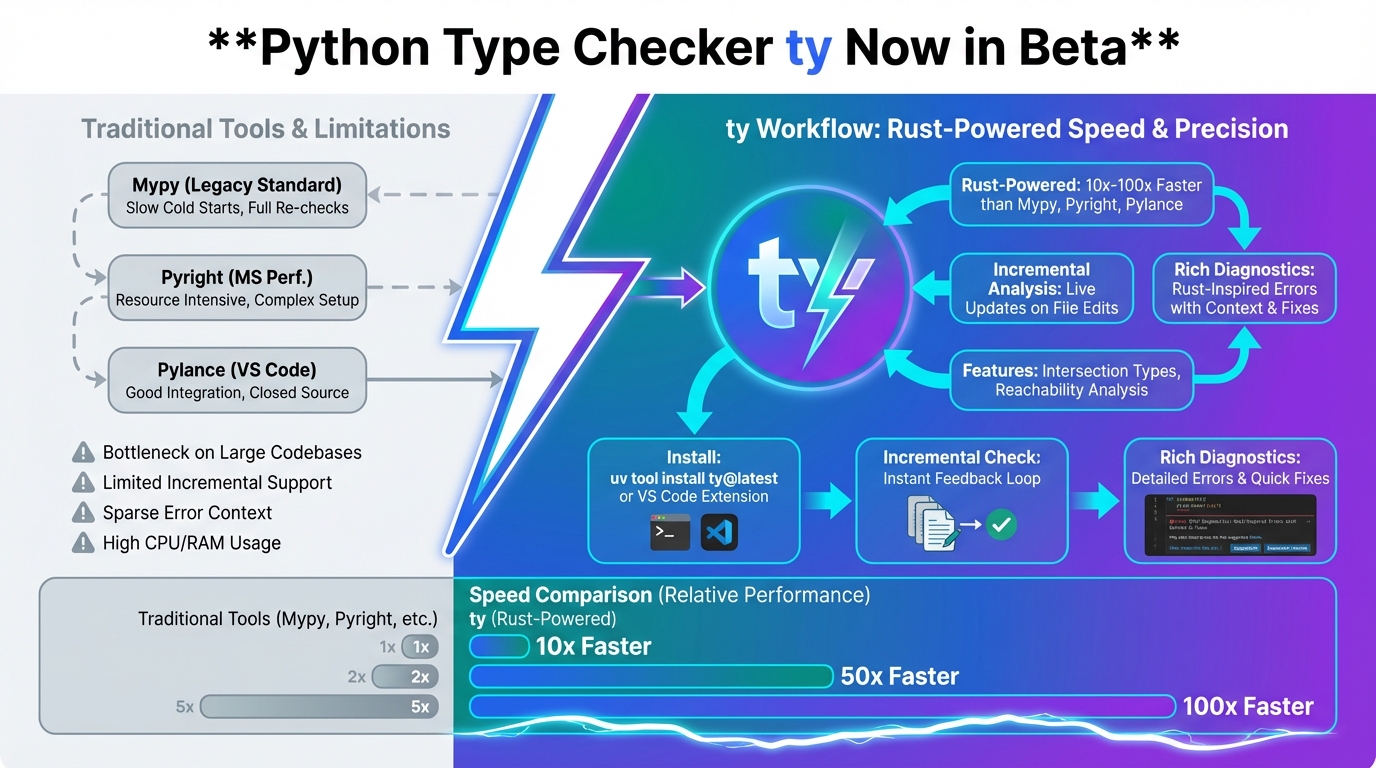 | Aspect | Old Method (e.g., mypy/Pyright) | New Solution (ty Beta) |